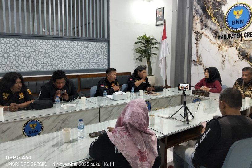 GRESIK | nusaberita.live – Lembaga Perlindungan Konsumen Republik Indonesia (LPK-RI) DPC Kabupaten Gresik melakukan audiensi dengan Kepala Badan Narkotika Nasional Kabupaten (BNNK) Gresik, AKBP Suharsi, S.H., M.Si., di kantor BNNK Jl. Pahlawan No. 1, Gapuro Sukolilo, Desa Bedilan, Kecamatan Gresik, pada Selasa (4/11/2025) siang.